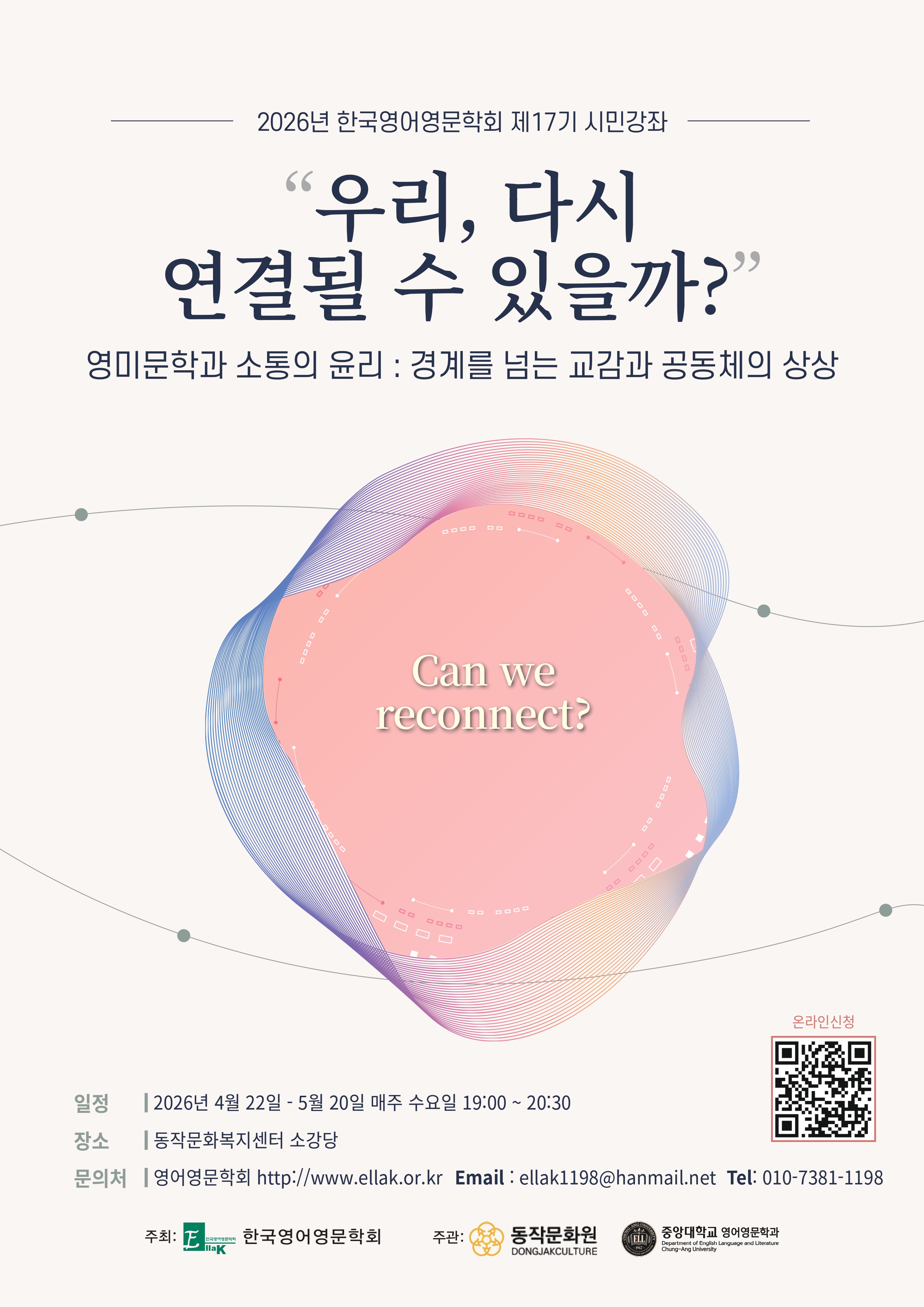 2026년 한국영어영문학회 제 17기 시민강좌 "우리, 다시 연결될 수 있을까?"에 대해 안내 드립니다.